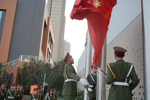 儀式在莊嚴的《義勇軍進行曲》中開始。國旗護衛隊步伐鏗鏘,護衛國旗至升旗臺。伴隨著激昂的國歌,五星紅旗冉冉升起,全體師生肅立注目、齊聲高唱,肅穆而熱烈的愛國情懷洋溢校園。