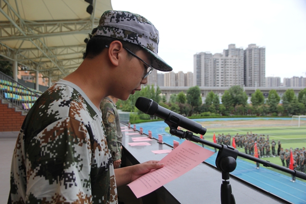 高一(16)班李璋煜作為新生代表發言,他分享軍訓收獲,感謝學校、教官和老師的付出,表態將把軍訓磨煉的意志融入到高中的學習。這次軍訓見證了他們的成長,更讓他們有了更大的信心面對未來的學習和高中生活。