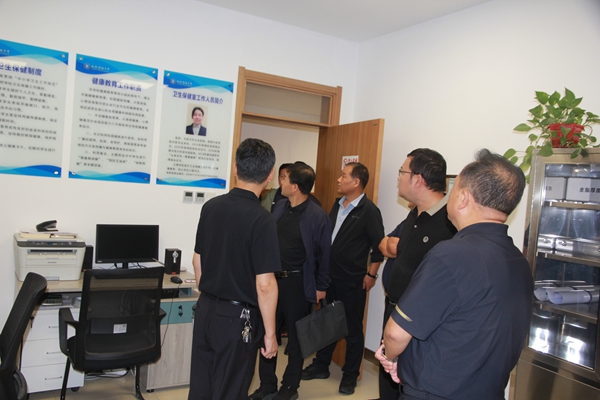 校長王璐陪同調研組實地察看了醫務室、食堂、宿舍等重點區域,并就學校傳染病防控的體系建設、師生健康監測、環境消殺、物資保障、結核病篩查及健康教育工作等方面,匯報了主要舉措和階段性成效。