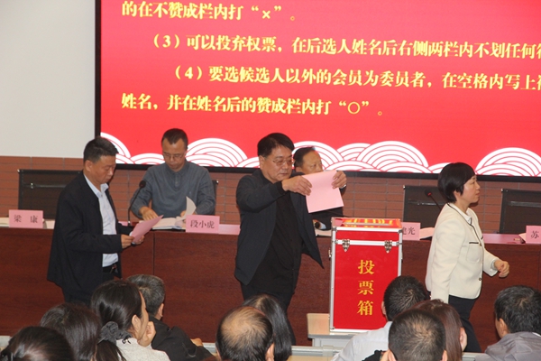 大會在莊嚴的國歌聲中拉開帷幕。辦公室主任陳超維宣讀了《渭城區總工會關于換屆選舉的批復》及新一屆委員候選人名單。副校長段小虎宣讀《委員會選舉辦法》,并經全體代表審議通過。會議隨后表決通過了總監票人、監票人和計票人。