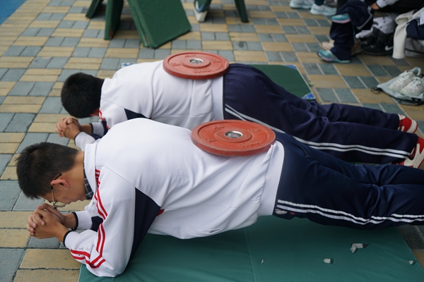 測試現場秩序井然,氛圍積極熱烈。立定跳遠區,同學們凝神聚力,騰空躍起,展現進發之勢;坐位體前屈項目中,大家奮力前伸,挑戰柔韌極限;仰臥起坐與引體向上區域,學子們彼此鼓舞、堅持不懈,不斷突破自我,彰顯出頑強拼搏的青春風采。