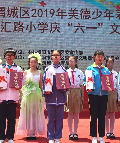 2019年5月30日下午,咸陽市渭城區(qū)2019年“美德少年”表彰活動(dòng)在渭城區(qū)文匯小學(xué)舉行。渭城區(qū)副區(qū)長程小曼、區(qū)委宣傳部副部長陳二庫、區(qū)文明辦副主任王海利,區(qū)教育局副局長劉銀裕、咸陽渭城中學(xué)校長尚懷奇等領(lǐng)導(dǎo)出席表彰會(huì)。會(huì)議宣讀了關(guān)于表彰渭城區(qū)2019年“美德少年”的通報(bào),我校高一(3)班袁起菲等20名同學(xué)獲得渭城區(qū)2019年“美德少年”榮譽(yù)稱號(hào)。